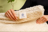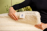 Prirodni lateks s GOLS certifikatom omotan prozračnom navlakom od organske vune s RWS certifikatom.